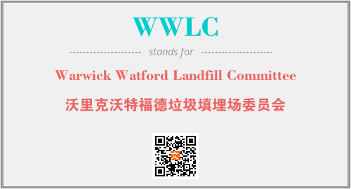 上述内容是“Warwick Watford Landfill Committee”作为“WWLC”的缩写,解释为“沃里克沃特福德垃圾填埋场委员会”时的信息,以及英文缩略词WWLC所代表的英文单词,其对应的中文拼音、详细解释以及在英文中的流行度和相关分类、应用领域及应用示例等。