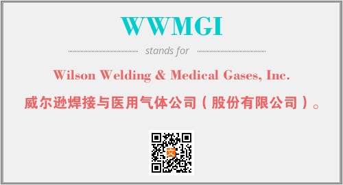 上述内容是“Wilson Welding & Medical Gases, Inc.”作为“WWMGI”的缩写,解释为“威尔逊焊接与医用气体公司(股份有限公司)。”时的信息,以及英文缩略词WWMGI所代表的英文单词,其对应的中文拼音、详细解释以及在英文中的流行度和相关分类、应用领域及应用示例等。