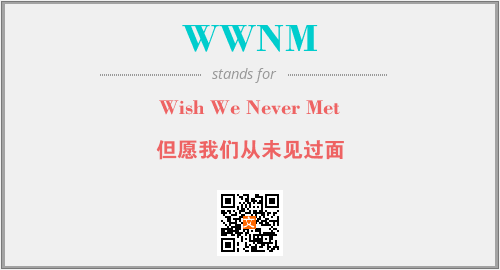 以上为Wish We Never Met英文缩略词WWNM的中文解释,以及该英文缩写在英语的流行度、分类和应用领域方面的信息。
