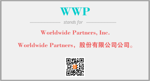 上述内容是“Worldwide Partners, Inc.”作为“WWP”的缩写,解释为“Worldwide Partners,股份有限公司公司。”时的信息,以及英文缩略词WWP所代表的英文单词,其对应的中文拼音、详细解释以及在英文中的流行度和相关分类、应用领域及应用示例等。