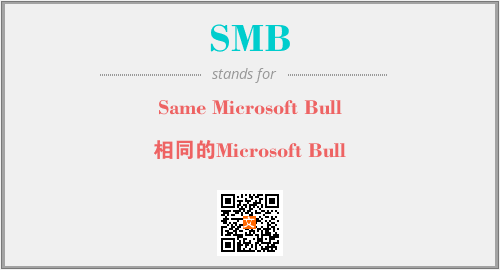 上述内容是“Same Microsoft Bull”作为“SMB”的缩写,解释为“相同的Microsoft Bull”时的信息,以及英文缩略词SMB所代表的英文单词,其对应的中文拼音、详细解释以及在英文中的流行度和相关分类、应用领域及应用示例等。