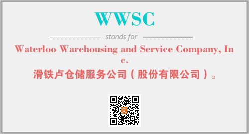 上述内容是“Waterloo Warehousing and Service Company, Inc.”作为“WWSC”的缩写,解释为“滑铁卢仓储服务公司(股份有限公司)。”时的信息,以及英文缩略词WWSC所代表的英文单词,其对应的中文拼音、详细解释以及在英文中的流行度和相关分类、应用领域及应用示例等。