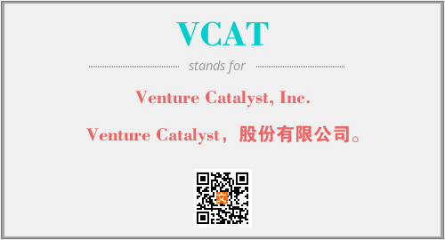 上述内容是“Venture Catalyst, Inc.”作为“VCAT”的缩写,解释为“Venture Catalyst,股份有限公司。”时的信息,以及英文缩略词VCAT所代表的英文单词,其对应的中文拼音、详细解释以及在英文中的流行度和相关分类、应用领域及应用示例等。