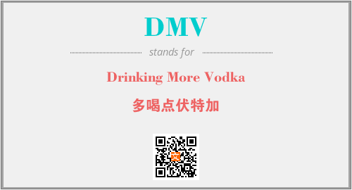 以上为Drinking More Vodka英文缩略词DMV的中文解释,以及该英文缩写在英语的流行度、分类和应用领域方面的信息。