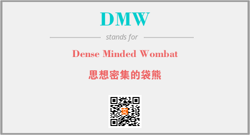 英文缩略词“DMW”经常作为“Dense Minded Wombat”的英文缩写来使用,中文表示:“思想密集的袋熊”。本文将详细介绍英文缩写词DMW所代表英文单词,其对应的中文拼音、详细解释以及在英语中的流行度。此外,还有关于缩略词DMW的分类、应用领域及相关应用示例等。