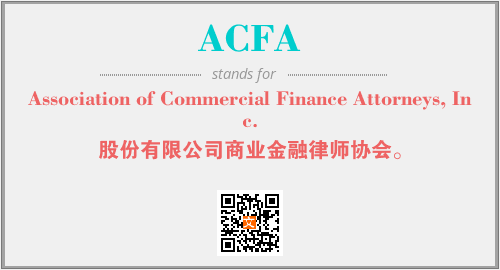 上述内容是“Association of Commercial Finance Attorneys, Inc.”作为“ACFA”的缩写,解释为“股份有限公司商业金融律师协会。”时的信息,以及英文缩略词ACFA所代表的英文单词,其对应的中文拼音、详细解释以及在英文中的流行度和相关分类、应用领域及应用示例等。