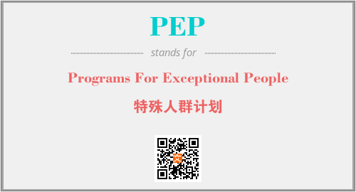 以上为Programs For Exceptional People英文缩略词PEP的中文解释,以及该英文缩写在英语的流行度、分类和应用领域方面的信息。