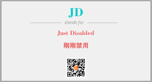 上述内容是“Just Disabled”作为“JD”的缩写,解释为“刚刚禁用”时的信息,以及英文缩略词JD所代表的英文单词,其对应的中文拼音、详细解释以及在英文中的流行度和相关分类、应用领域及应用示例等。