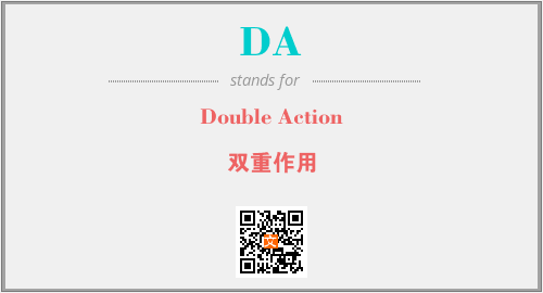 上述内容是“Double Action”作为“DA”的缩写,解释为“双重作用”时的信息,以及英文缩略词DA所代表的英文单词,其对应的中文拼音、详细解释以及在英文中的流行度和相关分类、应用领域及应用示例等。