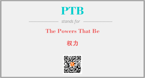 上述内容是“The Powers That Be”作为“PTB”的缩写,解释为“权力”时的信息,以及英文缩略词PTB所代表的英文单词,其对应的中文拼音、详细解释以及在英文中的流行度和相关分类、应用领域及应用示例等。