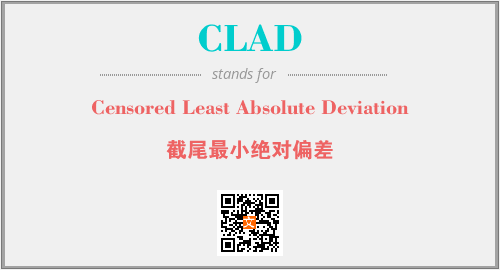 上述内容是“Censored Least Absolute Deviation”作为“CLAD”的缩写,解释为“截尾最小绝对偏差”时的信息,以及英文缩略词CLAD所代表的英文单词,其对应的中文拼音、详细解释以及在英文中的流行度和相关分类、应用领域及应用示例等。