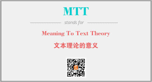 英文缩略词“MTT”经常作为“Meaning To Text Theory”的英文缩写来使用,中文表示:“文本理论的意义”。本文将详细介绍英文缩写词MTT所代表英文单词,其对应的中文拼音、详细解释以及在英语中的流行度。此外,还有关于缩略词MTT的分类、应用领域及相关应用示例等。