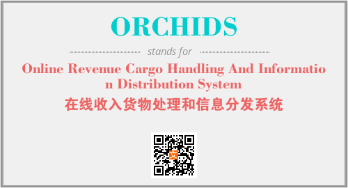 英文缩略词“ORCHIDS”经常作为“Online Revenue Cargo Handling And Information Distribution System”的英文缩写来使用,中文表示:“在线收入货物处理和信息分发系统”。本文将详细介绍英文缩写词ORCHIDS所代表英文单词,其对应的中文拼音、详细解释以及在英语中的流行度。此外,还有关于缩略词ORCHIDS的分类、应用领域及相关应用示例等。