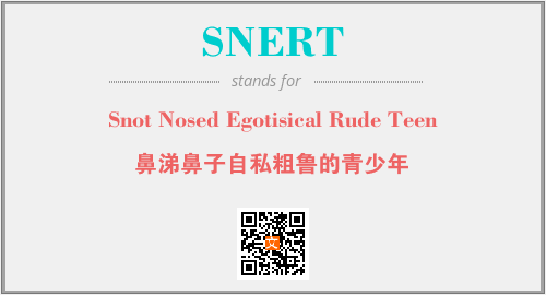 以上为Snot Nosed Egotisical Rude Teen英文缩略词SNERT的中文解释,以及该英文缩写在英语的流行度、分类和应用领域方面的信息。