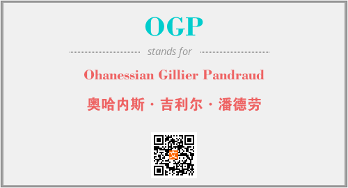 上述内容是“Ohanessian Gillier Pandraud”作为“OGP”的缩写,解释为“奥哈内斯·吉利尔·潘德劳”时的信息,以及英文缩略词OGP所代表的英文单词,其对应的中文拼音、详细解释以及在英文中的流行度和相关分类、应用领域及应用示例等。