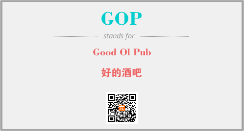 英文缩略词“GOP”经常作为“Good Ol Pub”的英文缩写来使用,中文表示:“好的酒吧”。本文将详细介绍英文缩写词GOP所代表英文单词,其对应的中文拼音、详细解释以及在英语中的流行度。此外,还有关于缩略词GOP的分类、应用领域及相关应用示例等。