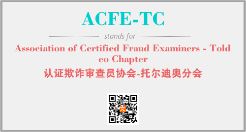 以上为Association of Certified Fraud Examiners - Toldeo Chapter英文缩略词ACFE-TC的中文解释,以及该英文缩写在英语的流行度、分类和应用领域方面的信息。
