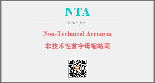 以上为Non-Technical Acronym英文缩略词NTA的中文解释,以及该英文缩写在英语的流行度、分类和应用领域方面的信息。