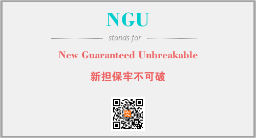 上述内容是“New Guaranteed Unbreakable”作为“NGU”的缩写,解释为“新担保牢不可破”时的信息,以及英文缩略词NGU所代表的英文单词,其对应的中文拼音、详细解释以及在英文中的流行度和相关分类、应用领域及应用示例等。