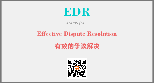英文缩略词“EDR”经常作为“Effective Dispute Resolution”的英文缩写来使用,中文表示:“有效的争议解决”。本文将详细介绍英文缩写词EDR所代表英文单词,其对应的中文拼音、详细解释以及在英语中的流行度。此外,还有关于缩略词EDR的分类、应用领域及相关应用示例等。