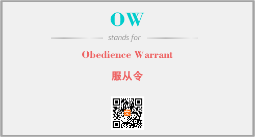 上述内容是“Obedience Warrant”作为“OW”的缩写,解释为“服从令”时的信息,以及英文缩略词OW所代表的英文单词,其对应的中文拼音、详细解释以及在英文中的流行度和相关分类、应用领域及应用示例等。