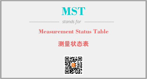 英文缩略词“MST”经常作为“Measurement Status Table”的英文缩写来使用,中文表示:“测量状态表”。本文将详细介绍英文缩写词MST所代表英文单词,其对应的中文拼音、详细解释以及在英语中的流行度。此外,还有关于缩略词MST的分类、应用领域及相关应用示例等。