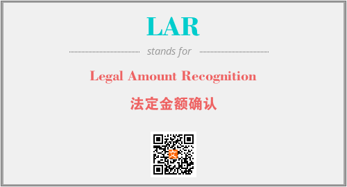上述内容是“Legal Amount Recognition”作为“LAR”的缩写,解释为“法定金额确认”时的信息,以及英文缩略词LAR所代表的英文单词,其对应的中文拼音、详细解释以及在英文中的流行度和相关分类、应用领域及应用示例等。