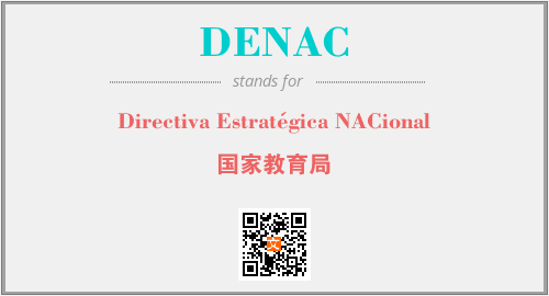 英文缩略词“DENAC”经常作为“Directiva Estratégica NACional”的英文缩写来使用,中文表示:“国家教育局”。本文将详细介绍英文缩写词DENAC所代表英文单词,其对应的中文拼音、详细解释以及在英语中的流行度。此外,还有关于缩略词DENAC的分类、应用领域及相关应用示例等。