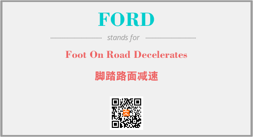以上为Foot On Road Decelerates英文缩略词FORD的中文解释,以及该英文缩写在英语的流行度、分类和应用领域方面的信息。