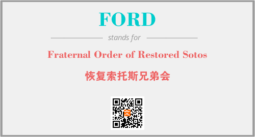 上述内容是“Fraternal Order of Restored Sotos”作为“FORD”的缩写,解释为“恢复索托斯兄弟会”时的信息,以及英文缩略词FORD所代表的英文单词,其对应的中文拼音、详细解释以及在英文中的流行度和相关分类、应用领域及应用示例等。