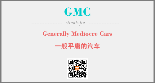 英文缩略词“GMC”经常作为“Generally Mediocre Cars”的英文缩写来使用,中文表示:“一般平庸的汽车”。本文将详细介绍英文缩写词GMC所代表英文单词,其对应的中文拼音、详细解释以及在英语中的流行度。此外,还有关于缩略词GMC的分类、应用领域及相关应用示例等。