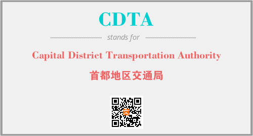 上述内容是“Capital District Transportation Authority”作为“CDTA”的缩写,解释为“首都地区交通局”时的信息,以及英文缩略词CDTA所代表的英文单词,其对应的中文拼音、详细解释以及在英文中的流行度和相关分类、应用领域及应用示例等。