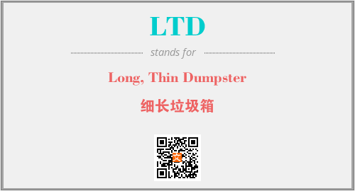 上述内容是“Long, Thin Dumpster”作为“LTD”的缩写,解释为“细长垃圾箱”时的信息,以及英文缩略词LTD所代表的英文单词,其对应的中文拼音、详细解释以及在英文中的流行度和相关分类、应用领域及应用示例等。