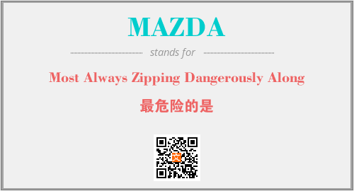 以上为Most Always Zipping Dangerously Along英文缩略词MAZDA的中文解释,以及该英文缩写在英语的流行度、分类和应用领域方面的信息。