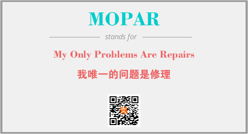 以上为My Only Problems Are Repairs英文缩略词MOPAR的中文解释,以及该英文缩写在英语的流行度、分类和应用领域方面的信息。