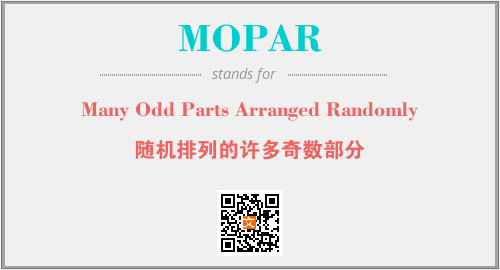 以上为Many Odd Parts Arranged Randomly英文缩略词MOPAR的中文解释,以及该英文缩写在英语的流行度、分类和应用领域方面的信息。