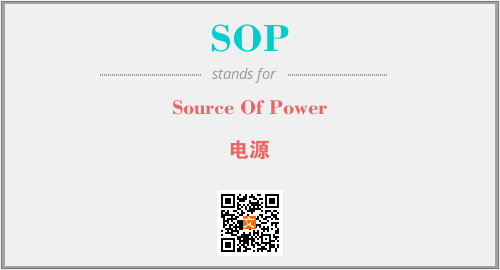 英文缩略词“SOP”经常作为“Source Of Power”的英文缩写来使用,中文表示:“电源”。本文将详细介绍英文缩写词SOP所代表英文单词,其对应的中文拼音、详细解释以及在英语中的流行度。此外,还有关于缩略词SOP的分类、应用领域及相关应用示例等。