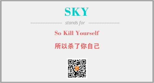以上为So Kill Yourself英文缩略词SKY的中文解释,以及该英文缩写在英语的流行度、分类和应用领域方面的信息。