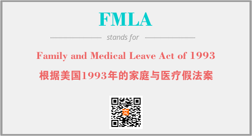 英文缩略词“FMLA”经常作为“Family and Medical Leave Act of 1993”的英文缩写来使用,中文表示:“根据美国1993年的家庭与医疗假法案”。本文将详细介绍英文缩写词FMLA所代表英文单词,其对应的中文拼音、详细解释以及在英语中的流行度。此外,还有关于缩略词FMLA的分类、应用领域及相关应用示例等。
