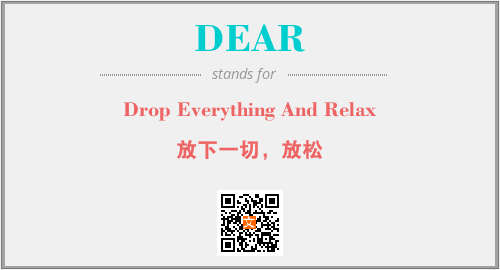 英文缩略词“DEAR”经常作为“Drop Everything And Relax”的英文缩写来使用,中文表示:“放下一切,放松”。本文将详细介绍英文缩写词DEAR所代表英文单词,其对应的中文拼音、详细解释以及在英语中的流行度。此外,还有关于缩略词DEAR的分类、应用领域及相关应用示例等。