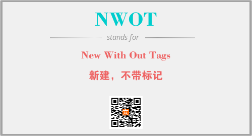 上述内容是“New With Out Tags”作为“NWOT”的缩写,解释为“新建,不带标记”时的信息,以及英文缩略词NWOT所代表的英文单词,其对应的中文拼音、详细解释以及在英文中的流行度和相关分类、应用领域及应用示例等。