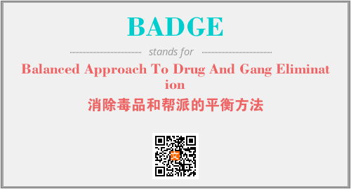 上述内容是“Balanced Approach To Drug And Gang Elimination”作为“BADGE”的缩写,解释为“消除毒品和帮派的平衡方法”时的信息,以及英文缩略词BADGE所代表的英文单词,其对应的中文拼音、详细解释以及在英文中的流行度和相关分类、应用领域及应用示例等。