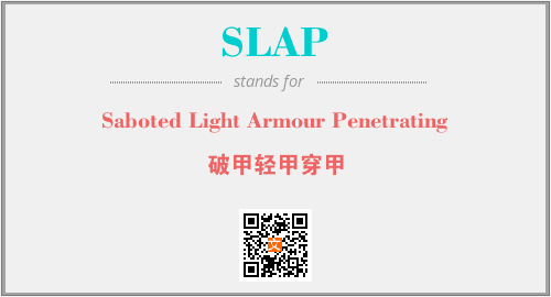 上述内容是“Saboted Light Armour Penetrating”作为“SLAP”的缩写,解释为“破甲轻甲穿甲”时的信息,以及英文缩略词SLAP所代表的英文单词,其对应的中文拼音、详细解释以及在英文中的流行度和相关分类、应用领域及应用示例等。