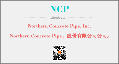 上述内容是“Northern Concrete Pipe, Inc.”作为“NCP”的缩写,解释为“Northern Concrete Pipe,股份有限公司公司。”时的信息,以及英文缩略词NCP所代表的英文单词,其对应的中文拼音、详细解释以及在英文中的流行度和相关分类、应用领域及应用示例等。