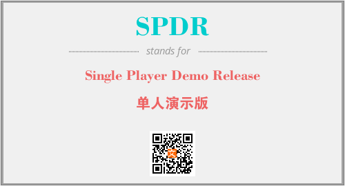 英文缩略词“SPDR”经常作为“Single Player Demo Release”的英文缩写来使用,中文表示:“单人演示版”。本文将详细介绍英文缩写词SPDR所代表英文单词,其对应的中文拼音、详细解释以及在英语中的流行度。此外,还有关于缩略词SPDR的分类、应用领域及相关应用示例等。