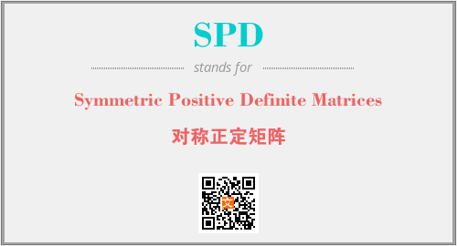 英文缩略词“SPD”经常作为“Symmetric Positive Definite Matrices”的英文缩写来使用,中文表示:“对称正定矩阵”。本文将详细介绍英文缩写词SPD所代表英文单词,其对应的中文拼音、详细解释以及在英语中的流行度。此外,还有关于缩略词SPD的分类、应用领域及相关应用示例等。