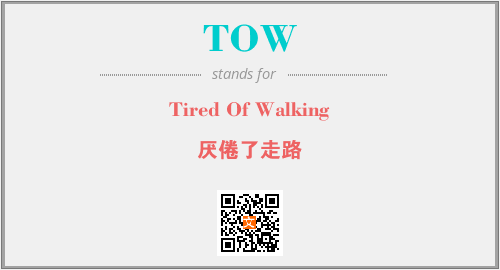 以上为Tired Of Walking英文缩略词TOW的中文解释,以及该英文缩写在英语的流行度、分类和应用领域方面的信息。