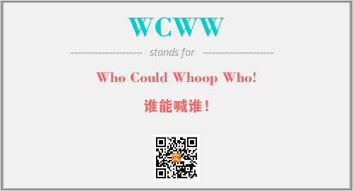 以上为Who Could Whoop Who!英文缩略词WCWW的中文解释,以及该英文缩写在英语的流行度、分类和应用领域方面的信息。