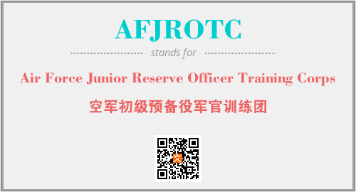 上述内容是“Air Force Junior Reserve Officer Training Corps”作为“AFJROTC”的缩写,解释为“空军初级预备役军官训练团”时的信息,以及英文缩略词AFJROTC所代表的英文单词,其对应的中文拼音、详细解释以及在英文中的流行度和相关分类、应用领域及应用示例等。