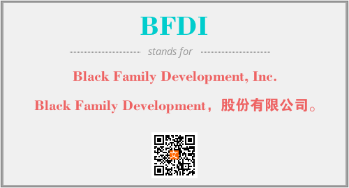 上述内容是“Black Family Development, Inc.”作为“BFDI”的缩写,解释为“Black Family Development,股份有限公司。”时的信息,以及英文缩略词BFDI所代表的英文单词,其对应的中文拼音、详细解释以及在英文中的流行度和相关分类、应用领域及应用示例等。
